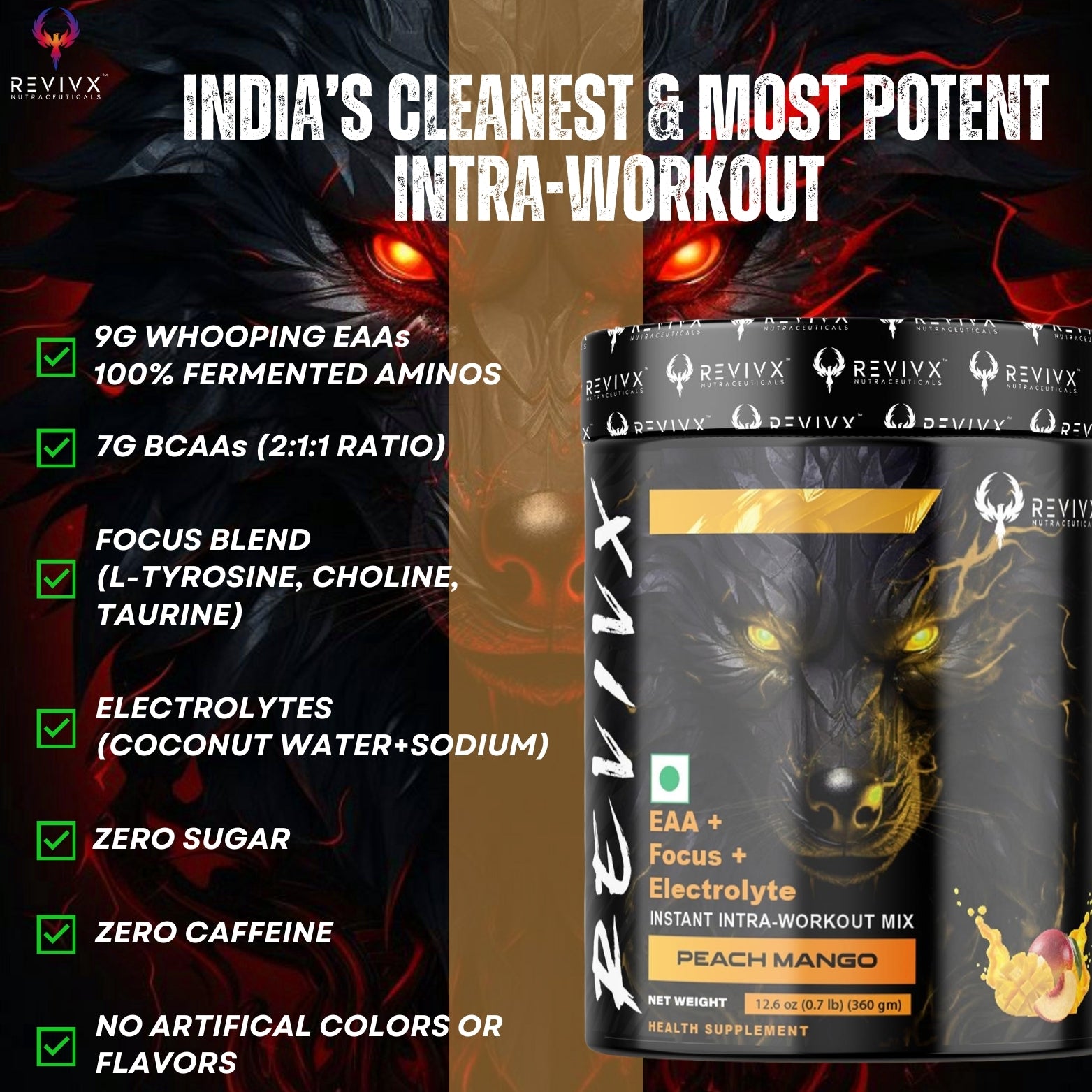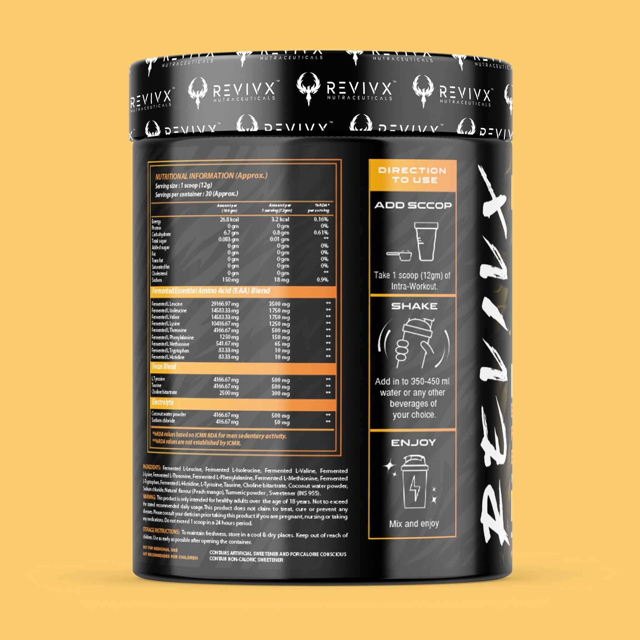 RevivX Intra-workout is formulated to fuel your body and mind during your toughest workouts. Packed with high-quality fermented essential amino acids, this intra-workout supplement supports muscle repair, hydration, and cognitive focus—helping you stay sharp and energized when it matters most.