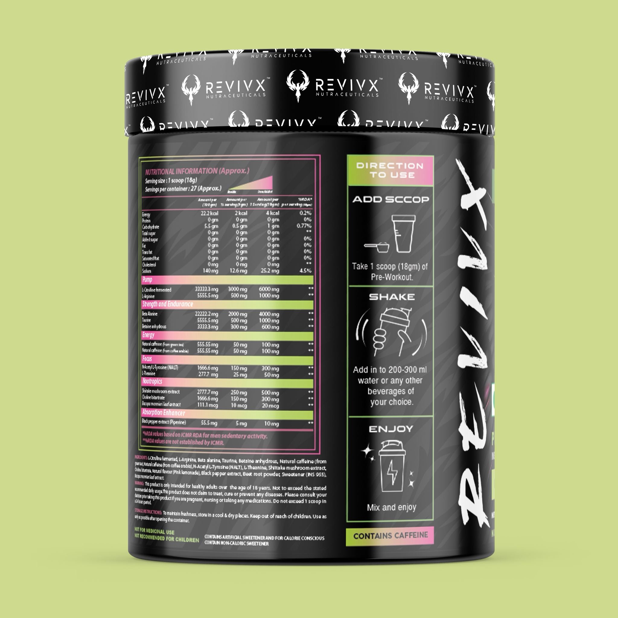 RevivX Pre-Workout is formulated for those who refuse to settle for less than the best. Packed with pharmaceutical-grade ingredients and backed by science, this formula is designed to deliver full clinical doses for real results.